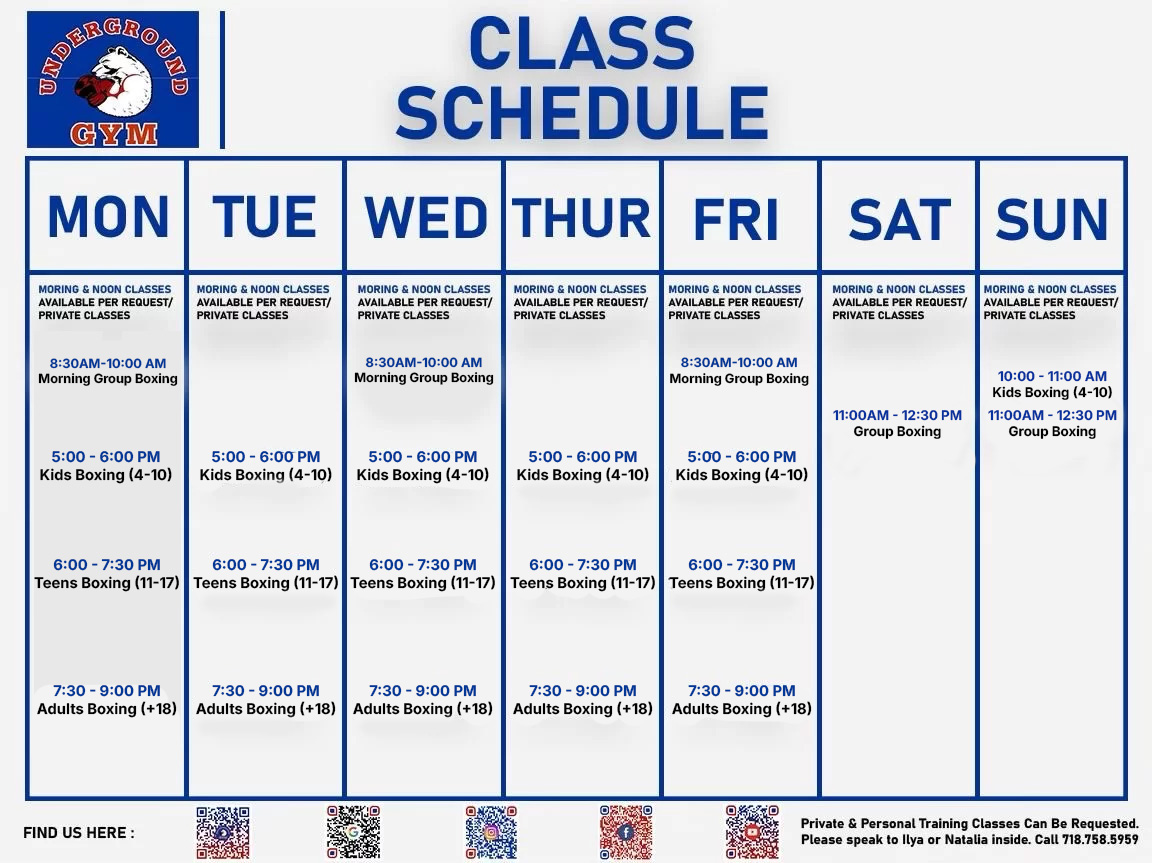 Underground Boxing gym, located in the heart of South Brooklyn, NY welcomes individuals of all ages, boxing & fitness experience levels looking to grow stronger physically & mentally; Coaching all of our students, members and fighters to accomplish their goals!